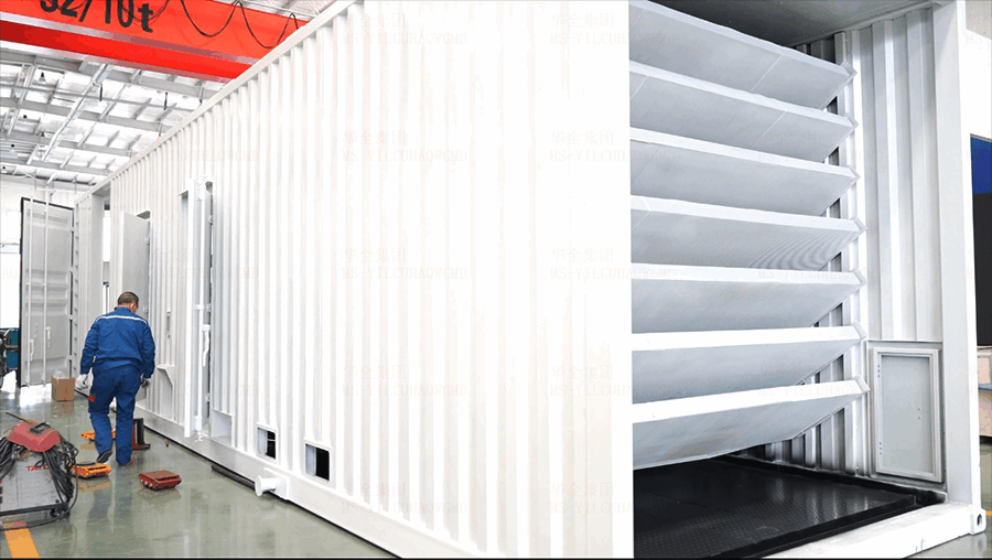 華全電力自研的集裝箱,具有強大承載能力和安全性,即使是惡劣的環(huán)境條件也無所畏懼,不論冬季嚴寒還是夏季酷暑,都可以保障機組運轉(zhuǎn)。
